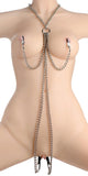 With this chained collar and clamp set, you can connect your playthings sensitive areas while adorned with a seductive chain collar. The clamps feature vinyl-coated ends and will provide constant stimulation. Use your imagination, this devious set can be used on the male anatomy as well.